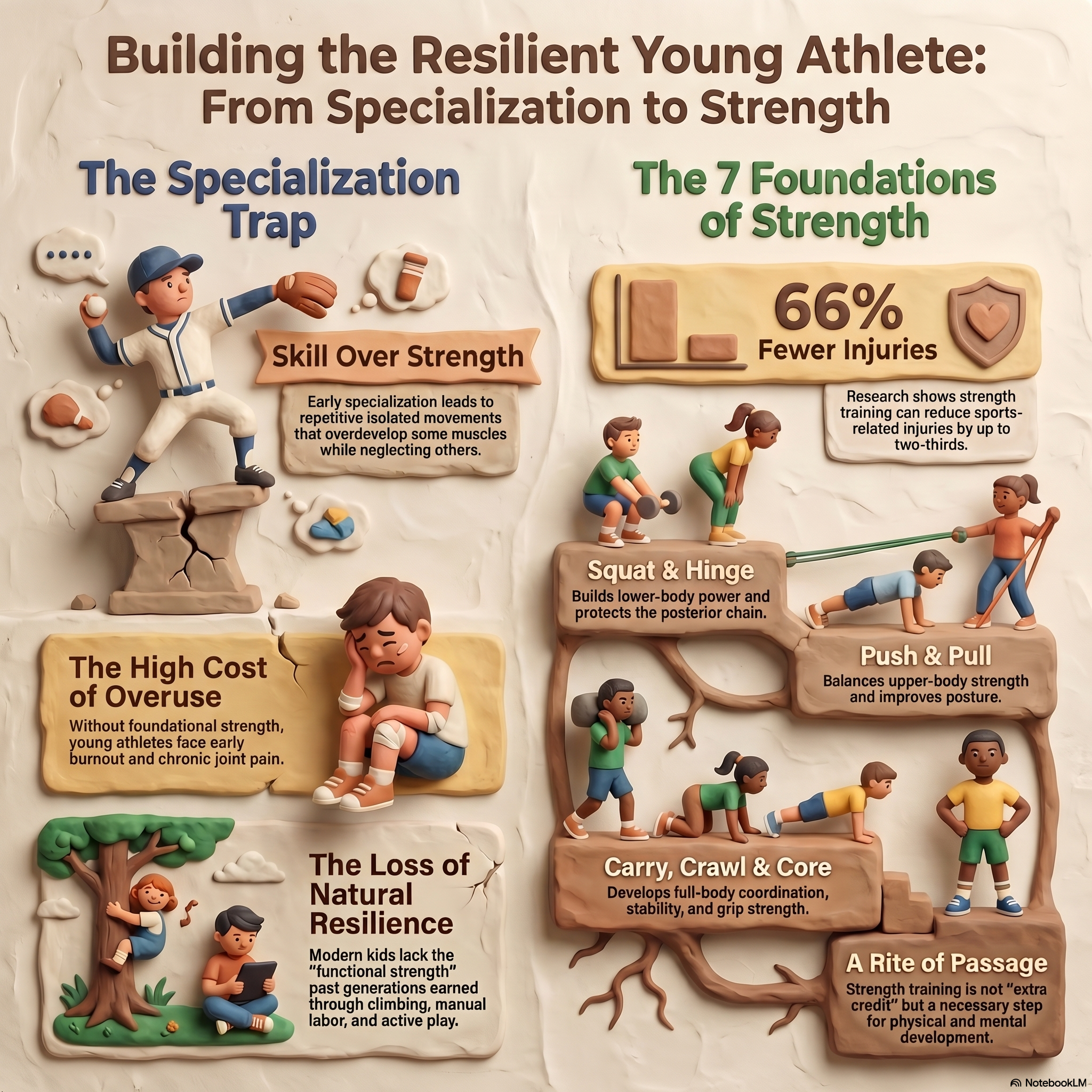 Jack and Mia aren’t unique. Across the country, kids are playing sports harder than ever while training their bodies less than ever. Their overuse injuries aren’t random bad luck. They’re the predictable result of a culture that prioritizes skill work over fundamental strength.