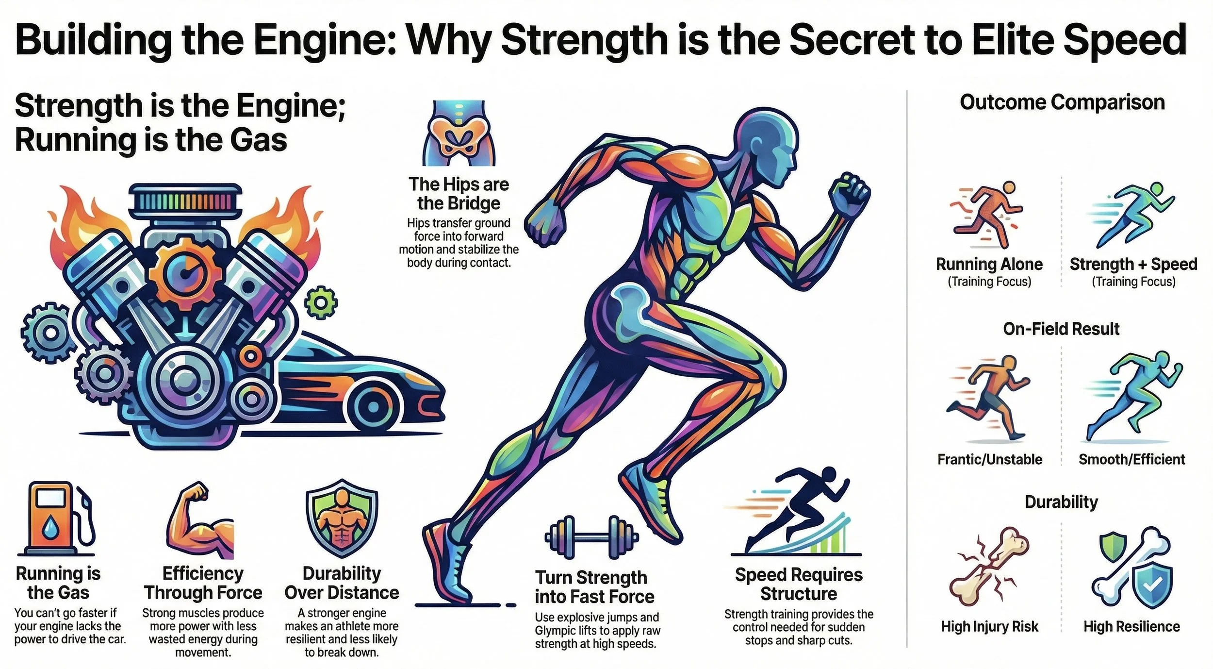 Because it feels simple, many athletes assume that if they just run more, they’ll become faster, more explosive, and harder to stop.